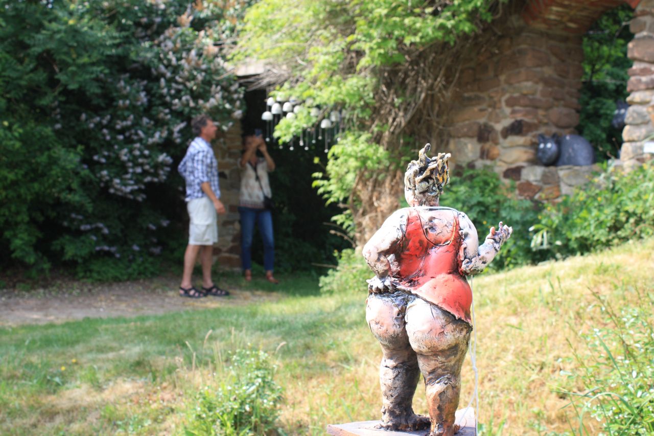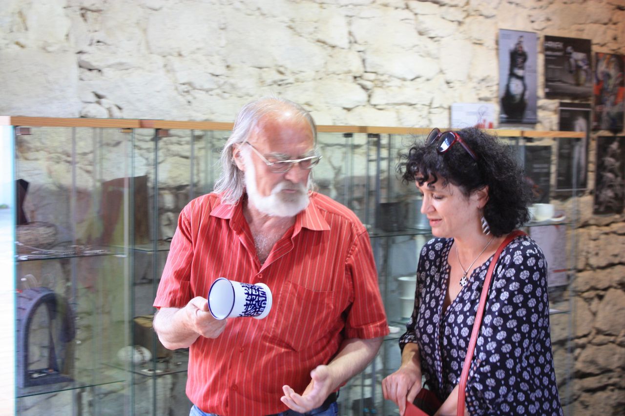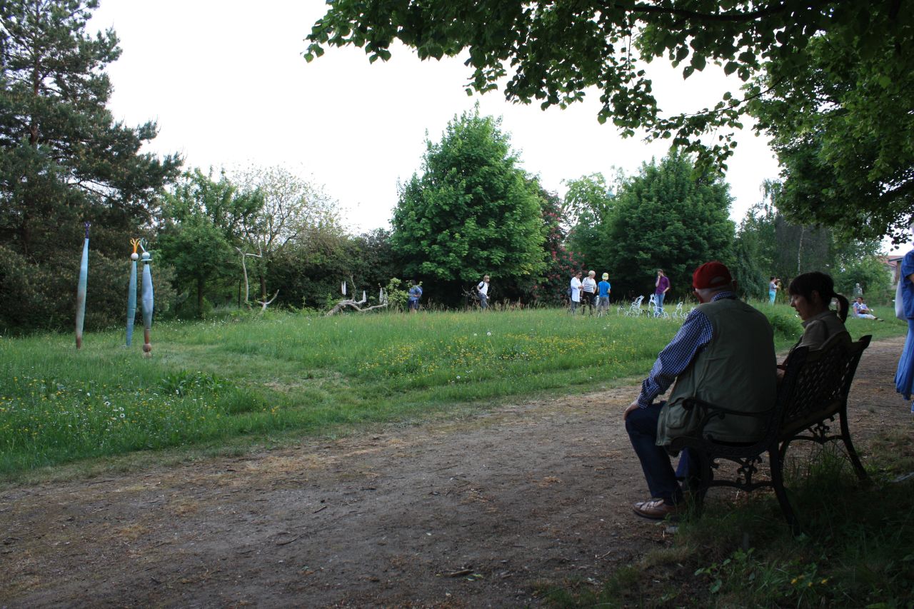 Mám velikou radost, že jsem u nás mohla uvítat malíře, sochaře, keramika, kosteleckého rodáka s hlubokými rodinnými kosteleckými kořeny, pana Zdenka Hůlu. Rádi jsme s ním oslavili jeho sedmdesátku a on nás nechal a přes celé léto ještě nechává nahlédnout do své současné i minulé tvorby. Na zahradě stojí dvě nádherné sochy, vlastně levitující kameny. Nezvyklé propojení žuly a skla.