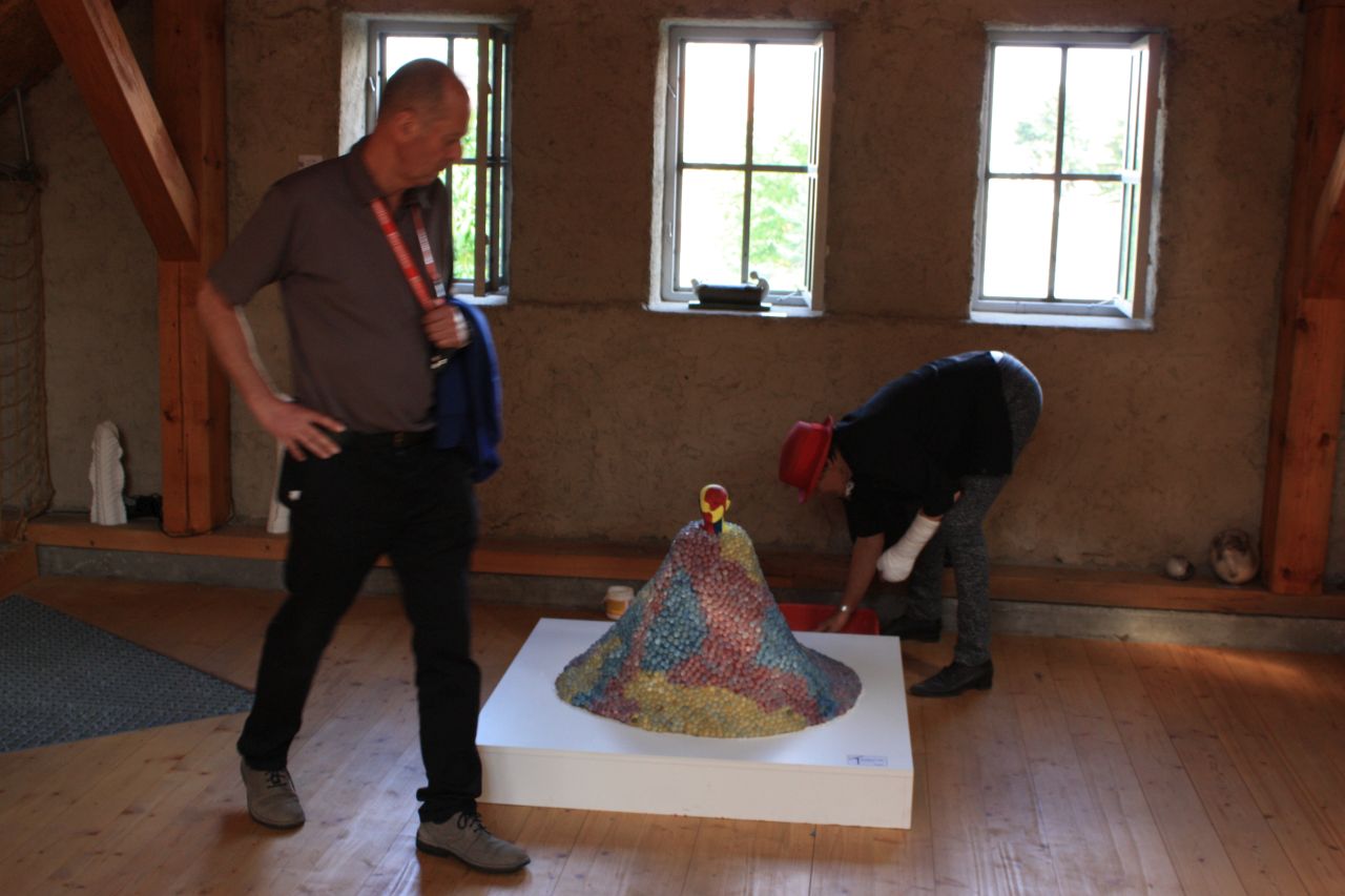 Ve vrchních prostorách galerie a hlavně na zahradě na Vás čekají různé hravé artefakty. Umíte si vůbec vzpomenout, jak dlouho jste třeba nehráli kuličky, nebo neskákali panáka?
